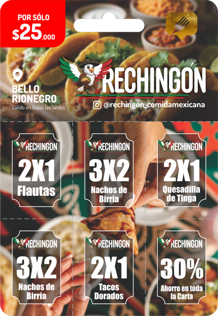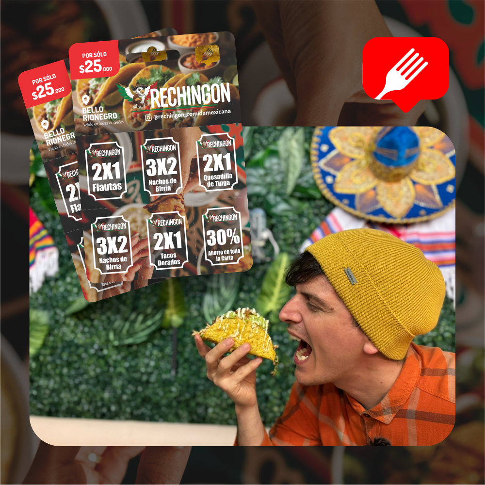 Disfruta 6 cupones por solo $25.000: pagas 1 plato y el segundo es totalmente GRATIS. Ideal para ir en pareja, con amigos o familia y ahorrar en cada visita.